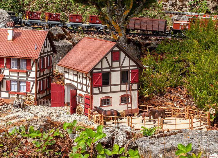 Plastová probarvená a ručně patinovaná stavebnice. Určeno pro zahradní železnici G i celoroční umístění venku.