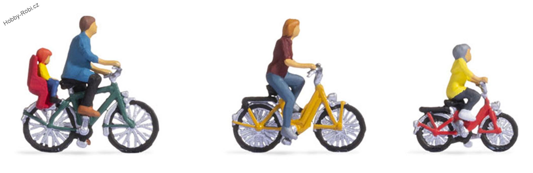 Cyklisti s jízdními koly. Ručně barvené figurky.